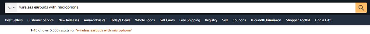 As shown in the following pictures, if you type in “wireless earbuds” only in the search buds, you’ll get more than 10,000 results in total.